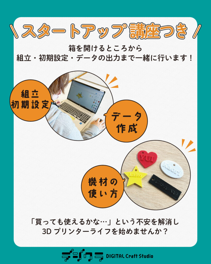 また、購入前後の不安を解消するため「スタートアップ講座つき3Dプリンター即売会」をグッデイデジタルクラフトスタジオ(長尾店・姪浜店・久留米野中店・ひびきの店・基山弥生が丘店)およびグッデイ土井店にて順次実施、レクチャー体制も強化します。